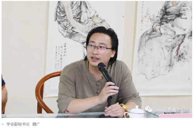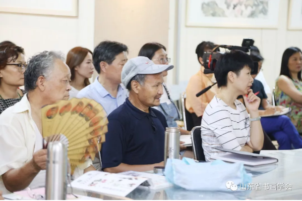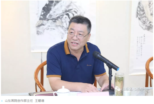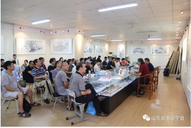 2018年7月15日(周日)上午9:30分,由山东省书画学会、山东省文化馆和济南市美术家协会共同举办的“齐鲁讲坛 ----书画大讲堂”活动第八十九期暨学会暑假创作高研班第一课在山东艺术设计职业学院第三美术馆开讲,本期题目为《从生活到创作》,讲座由中国美术家协会会员、山东省美术家协会理事、山东省中国画学会副秘书长、山东画院创作部主任王磐德主讲,副会长孙华进先生主持,副秘书长王承斌、魏广先生,办公室副主任季杰女士参加了本次活动。